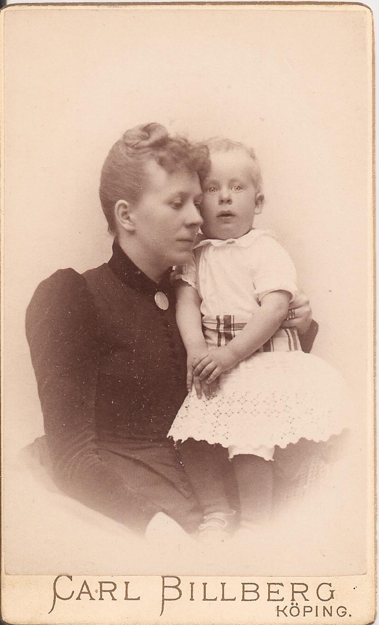 Nanny Magnusson, 15 juni 1892. Det står inte på baksidan vem barnet är, men sonen Ragnar var drygt 1½ år då.
